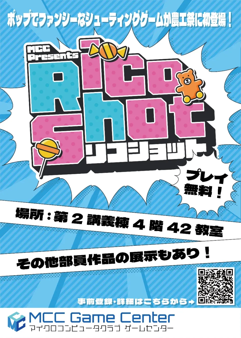 農工大では11月に農工祭という学園祭があります。 MCCでは毎年ゲームの展示をしていて、今年もゲームを作って展示しました。