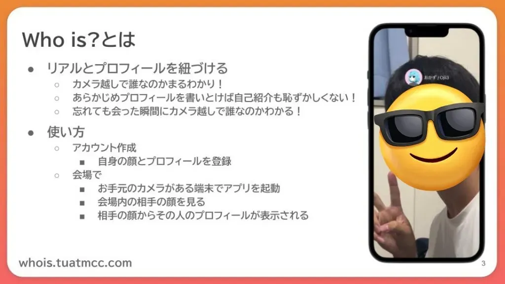 MCCの有志6人でOpen Hack U 2024 TOKYO Vol.2に参加しました。自分としてはかなり久しぶりのハッカソンで、初心者を連れての参加だったので勝手が分からなくて結構苦戦しましたが、なんとか発表日前に完成させることが出来、良かったです。